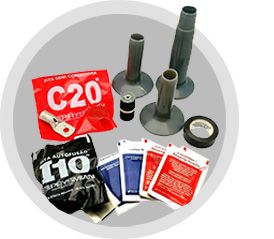 O kit do terminal modular TM é composto por um tubo de alívio de campo elétrico (TVR) em EPDM, saias isolantes em borracha à base de silicone, cobertura de aterramento, mastic, fita autofusão I-10, fita semicondutora C-20, fita plástica, graxa isolante, material de limpeza e instrução de montagem.